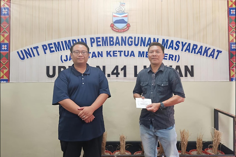 Sumbangan itu disampaikan oleh Pemaju Mukim Luagan, Ruddy Gijau dalam satu majlis ringkas di Pejabat Unit Pemimpin Pembangunan Masyarakat (UPPM) Liawan dan diterima oleh bapa Sazlan, John Lausang.