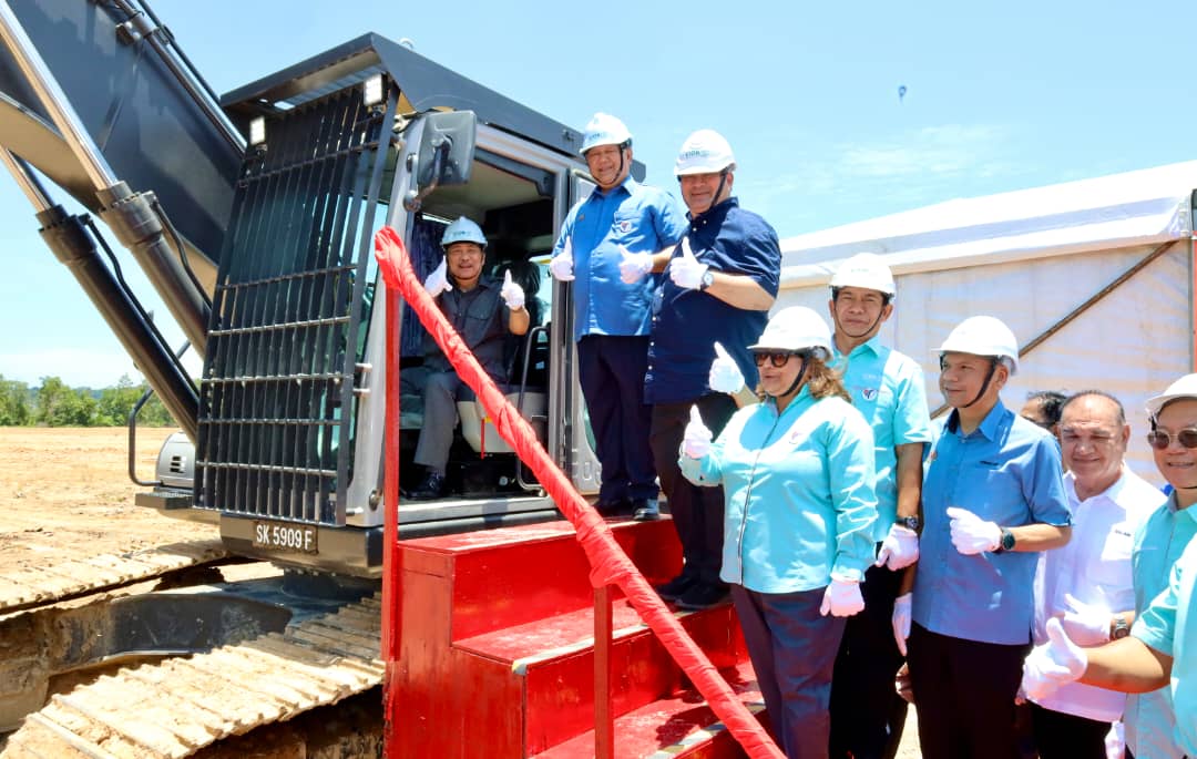 Ketua Menteri, Datuk Seri Panglima Haji Hajiji Haji Noor dan tetamu lain melakukan gimik pecah tanah Projek Pembinaan Kampus Akademi Binaan Malaysia (ABM) Wilayah Sabah di Tapak Kampus ABM, Beringgis, Papar pada Sabtu.