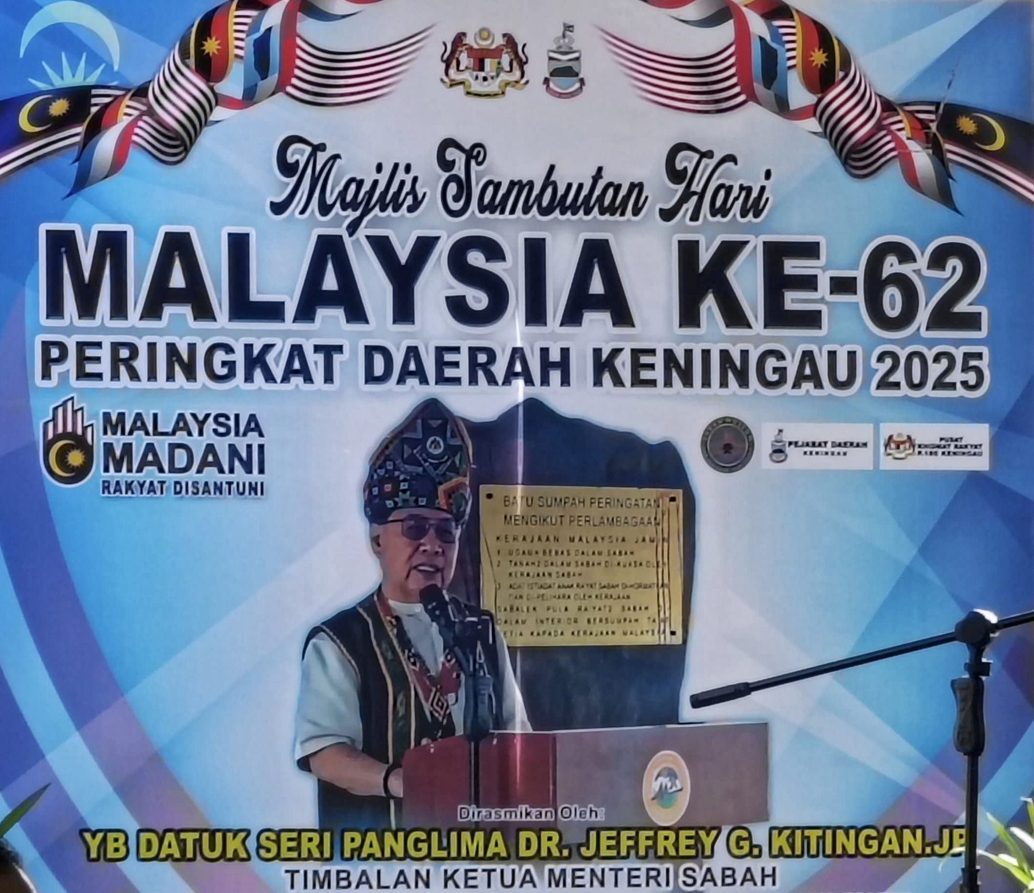 KENINGAU: Sambutan Hari Malaysia ke-62 peringkat daerah Keningau yang berlangsung di Perkarangan Batu Sumpah hari ini, disambut penuh meriah dengan kehadiran pimpinan negeri dan masyarakat setempat.