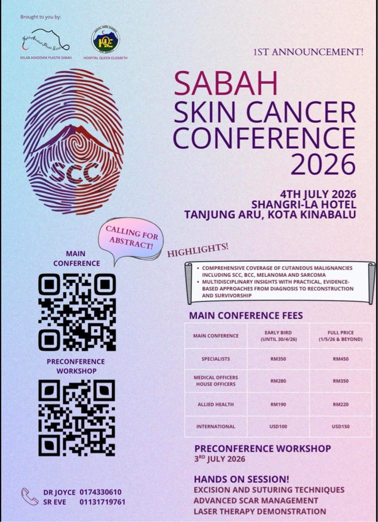 Organised by the Sabah Plastic Academic Club, Hospital Queen Elizabeth, the conference carries the theme “Defining Margins, Refining Outcomes”, highlighting the importance of precision in diagnosis, surgical management and reconstruction to improve patient outcomes.