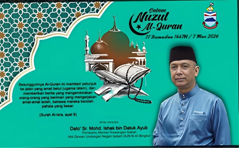 KENINGAU: Pembantu Menteri Kewangan Sabah merangkap Ahli Dewan Undangan Negeri (ADUN) Bingkor, Dato’ Sr. Mohd Ishak Ayub, menyeru umat Islam agar terus menghayati dan menjadikan Al-Quran sebagai panduan hidup sempena sambutan Nuzul Al-Quran 1447 Hijrah.