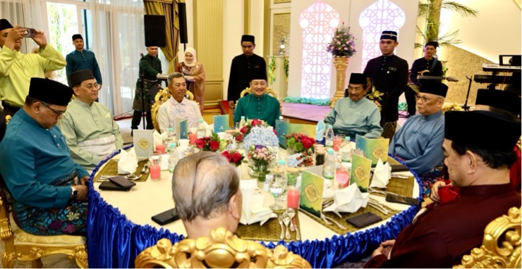 KOTA KINABALU: Ketua Menteri, Datuk Seri Panglima Haji Hajiji Haji Noor bersama isteri, Datin Seri Panglima Datuk Hajah Juliah Salag antara tetamu yang menghadiri Majlis Sambutan Hari Raya Aidilfitri 1447H/2026M Istana Seri Kinabalu, pada 1 Syawal.