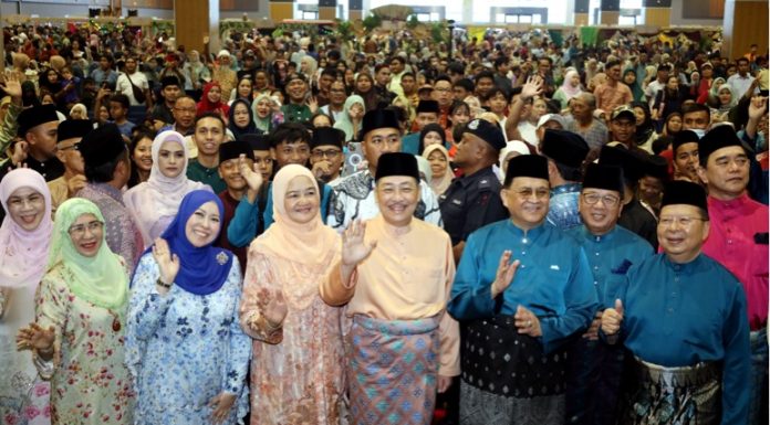 KENINGAU: Majlis Rumah Terbuka Aidilfitri ADUN Bingkor, Dato’ Sr. Mohd Ishak bin Datuk Ayub, berlangsung meriah dengan kehadiran barisan pemimpin utama negeri dan Persekutuan serta ribuan masyarakat pelbagai kaum yang membanjiri lokasi acara sejak tengah hari.