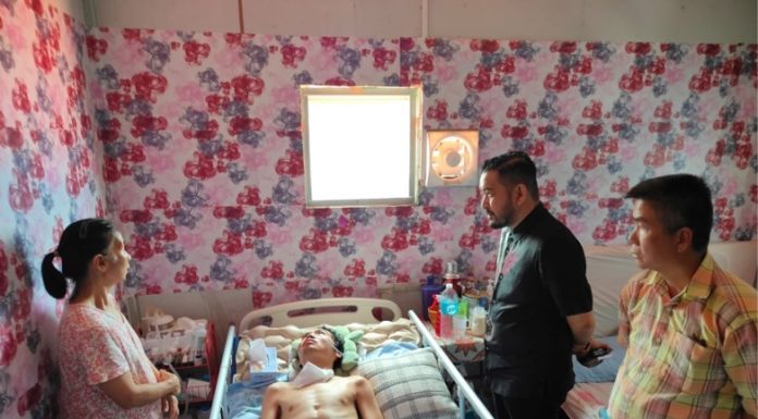 KENINGAU: Ahli Dewan Undangan Negeri (ADUN) Liawan, Dato’ Mohd Nik Nadzri Nik Zawawi menziarahi pesakit terlantar, Jeffrin Matius, 35, di Kampung Toboh Baru petang tadi serta menyalurkan bantuan kewangan selepas menerima laporan media mengenai keadaannya.