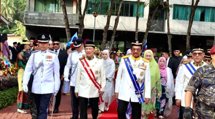 Accompanied by his wife Datin Seri Panglima Datuk Hajah Juliah Salag, Hajiji arrived at 7.55 am and received the salute from the Main Guard of Honour upon...