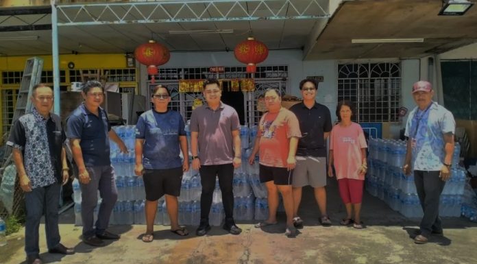 KENINGAU: Prihatin dengan kesulitan penduduk akibat terputus bekalan air sejak seminggu lalu, Pembantu Menteri Kerja Raya Negeri merangkap Ahli Dewan Undangan Negeri (ADUN) Bingkor, Datuk Robert Tawik @ Nordin, menghulurkan bantuan 150 karton air minuman kepada penduduk Taman Khong Lok, di sini hari ini.