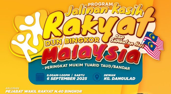 KENINGAU: Program Jalinan Kasih Rakyat DUN Bingkor yang digabungkan dengan sambutan Hari Malaysia bakal berlangsung Sabtu ini, 6 September, bermula jam 8 pagi hingga 1 tengah hari di Dewan Kampung Dangulad, Bingkor.