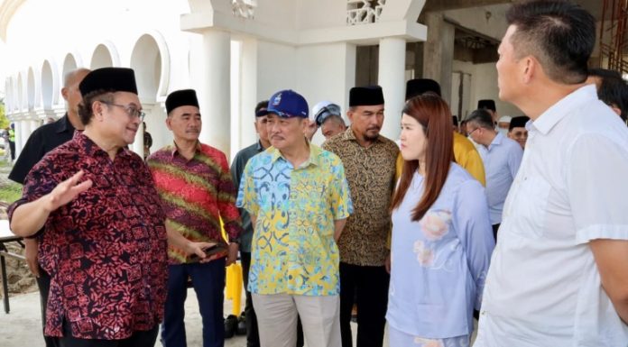 Ketua Menteri, Datuk Seri Panglima Haji Hajiji Haji Noor mendengar taklimat daripada Projek Arkitek, Pusat Islam Sandakan, Mir Zafriz Mior Zawari mengenai pembinaan Pusat Islam Sandakan, di Jalan Sungai Kayu, di Sandakan pada Khamis.