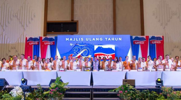 KOTA KINABALU: Pertubuhan Kinabalu Progresif Bersatu (UPKO) meraikan sambutan ulang tahun ke-30 dalam suasana penuh makna yang dihadiri para pengasas parti itu, di SICC, semalam.