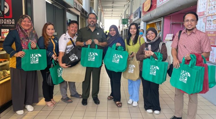 PUTATAN: University College Sabah Foundation (UCSF) bersama sekumpulan alumni universiti itu telah mengedar beg bukan woven di lokasi terpilih di Pekan Putatan, baru-baru ini.