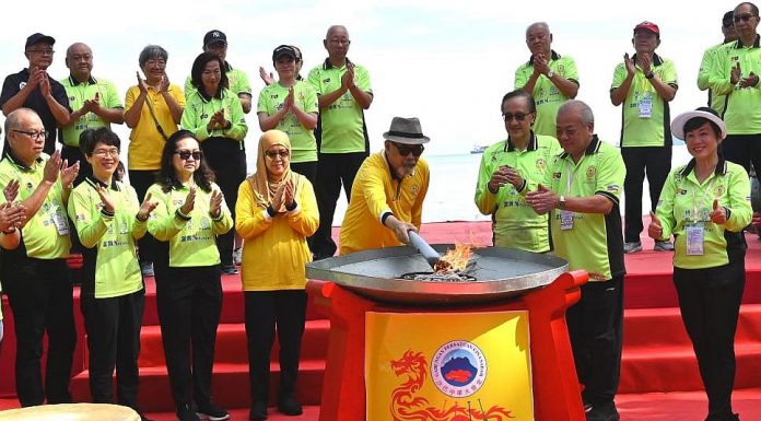 KOTA KINABALU: The 9th Sabah International Dragon Boat Race organized by the Federation of Chinese Associations Sabah (FCAS) was on Sunday graced and officiated by Sabah Governor Tun Juhar Mahiruddin, who was also the guest of honor for the event.Tun Juhar was accompanied by his wife, Toh Puan Norlidah R.M. Jasni.