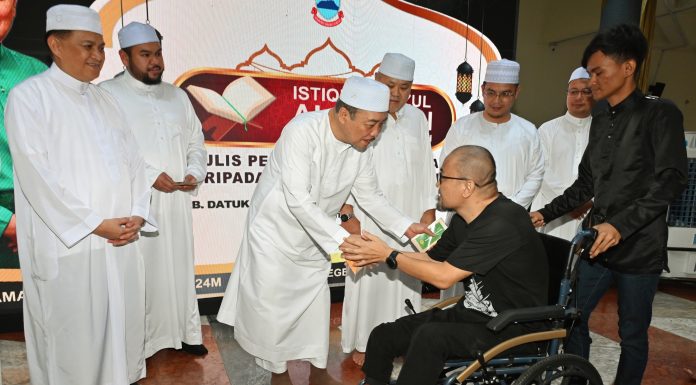Beliau turut menyampaikan sumbangan daripada Perbadanan Baitumal Negeri Sabah kepada 30 asnaf dari kawasan Kota Kinabalu.