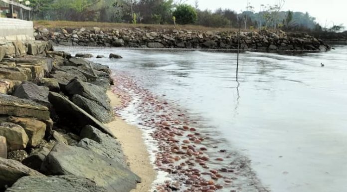 KOTA KINABALU: Jabatan Perikanan telah menghantar anggota dari pejabat Kuala penyu ke tempat kawawan kejadian untuk memantau dan menyiasat damparan jelly fish yang begitu luar biasa dan padat