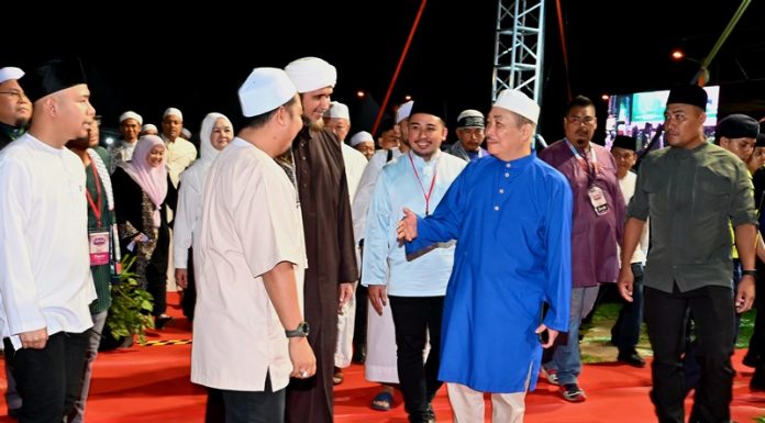 TUARAN: Ketua Menteri, Datuk Seri Panglima Haji Hajiji Haji Noor dan isteri, Datin Seri Panglima Hajah Juliah Salag menghadiri Cermah Perdana sempena Tamu Belia Tuaran