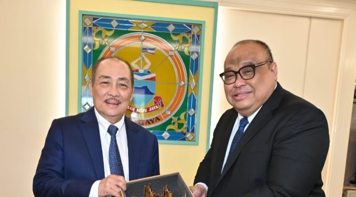 KOTA KINABALU: Ketua Menteri, Datuk Seri Panglima Haji Hajiji Haji Noor menerima kunjungan hormat daripada Konsul Jenderal Republik Indonesia (KJRI) di Kota Kinabalu, yang baru, Bapak Noorman Effendi, di kediaman rasmi Ketua Menteri di Sri Gaya, di sini pada Isnin.