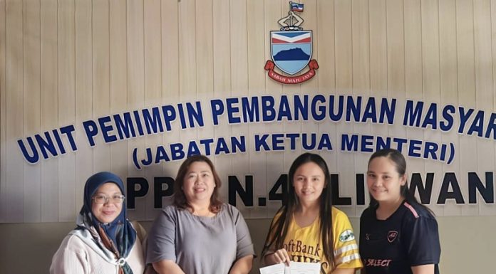 Mewakili beliau, Pemaju Mukim Lingkudau, Noritah Melvina Dungkian, menyampaikan sumbangan kepada belia Kampung Bakiau dan Kampung Kadalakan di Pejabat Unit Pemimpin Pembangunan Masyarakat (UPPM) Liawan.