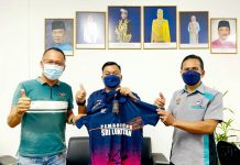 TAJAAN…Pemimpin Pembangunan Masyarakat (PPM) Dewan Undangan Negeri (DUN) Sindumin, Encik Sani Haji Miasin (tengah) yang juga Pengurus Pasukan Bolasepak SAFA Zon Pantai Barat Selatan...