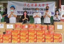 吴添泉也代表沙华堂感谢大马华总及砂劳越华总在这方面所给予的配合和支持,通过沙华堂对沙巴州前线医护人员所捐赠的大爱。