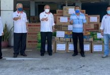 另一方面,吴添泉也在沙华堂发动的“华堂送暖”系列计划的“发放物资”活动中,移交物资予亚庇碧南堂,由主席李宏武代表该堂接领。陪同出席的华堂领袖包括该堂两名副总会长甲必丹冯春发和林文灿,总秘书拿督杨仕平以及正副总财政陈俊杰与陈裕生等。