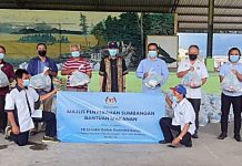 KOTA KINABLU: Timbalan Menteri Pelancongan Seni dan Budaya Malaysia, Senator Datuk Guandee Kohoi menyampaikan 550 Bakul Makanan kepada beberapa pemimpin masyarakat dari Kudat, Kota...