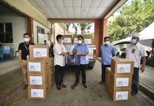 KOTA BELUD: Kira-kira 70 petugas barisan hadapan menerima sumbangan pada Program CSR MAFI Prihatin oleh FAMA Sabah di Pusat Pemberian Vaksin (PPV) Dewan Tun...