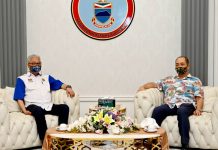 BINCANG....Ketua Menteri, Datuk Seri Panglima Haji Hajiji Haji Noor (kanan) mengadakan perbincangan bersama Menteri Kanan (Pertahanan), Dato' Sri Ismail Sabri bin Yaakob semasa menerima...